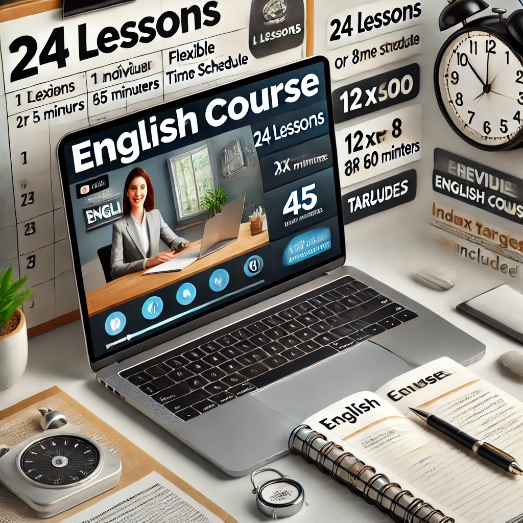 Boost your English skills with 24 flexible lessons (45 minutes each). Tailored to your goals, with all materials included. Learn at your pace and achieve fluency today!